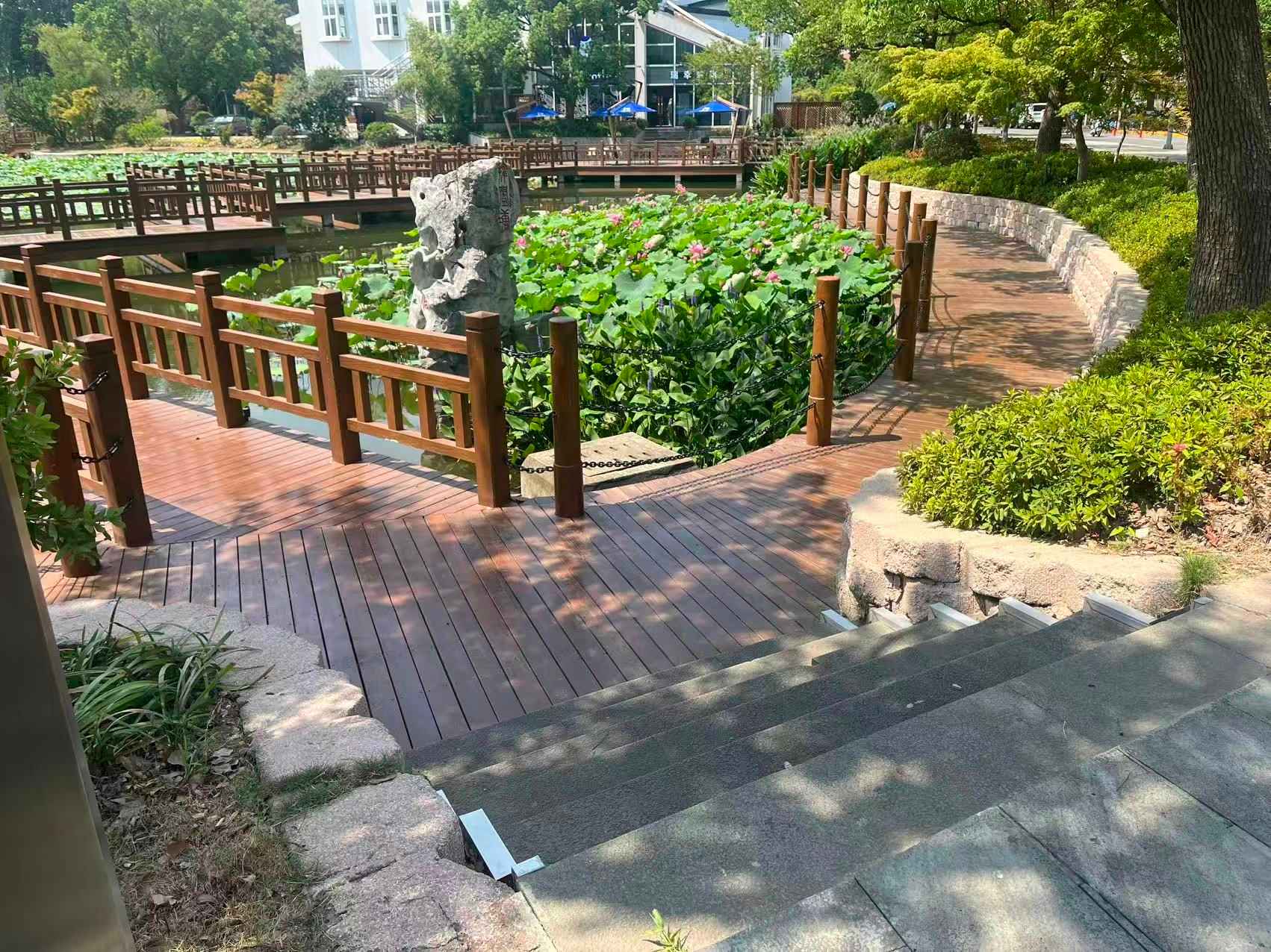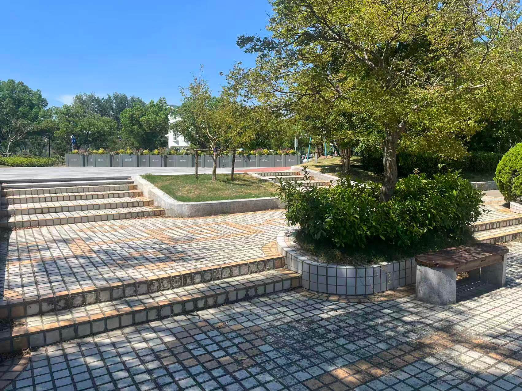- Artificial Hill: stone-slab path with multiple single-step ledges; walked from the base to the summit and descend via the back trail, exhibiting pronounced elevation changes and varied surface textures.